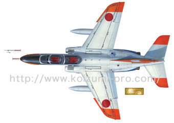 川崎T-4パース画(ブルーインパルス) 原稿状態:完成 サイズ:cm×cm(A3相当) 厚口ケント紙、アクリル絵の具 |